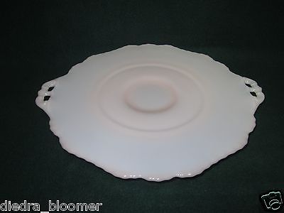 Vintage Pink Milk Glass Footed Cake Plate W/ Handles