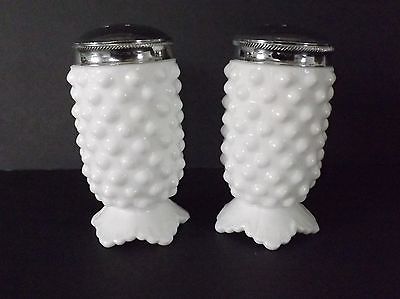 Vintage Pair White Fenton Hobnail Scalloped Edge Milk Glass Salt & Pepper Shaker
