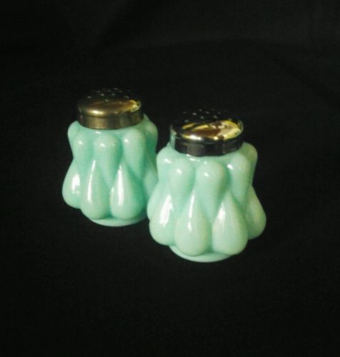 Rare Vintage Fenton Aqua Milk Glass Tear Drop Salt and Pepper Shakers