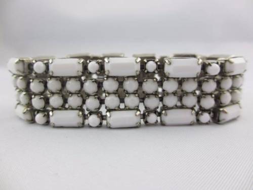 Title (ebay affiliate link): Vintage Signed WEISS Silver Tone White Milk Glass Bracelet