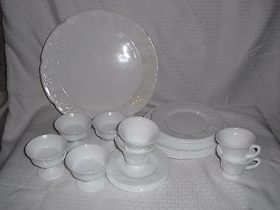 Vtg. Indiana "Colony Harvest" 19 Piece Milk Glass Grapes/Leaves Dinnerware Set