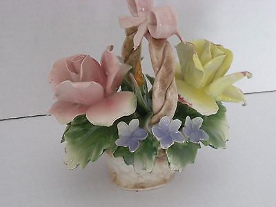 Title (ebay affiliate link): Capodimonte Ceramic Basket with Pink, Yellow, and Purple Flowers