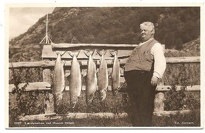 Title (ebay affiliate link): Laerdalselven laerdal river Husom Hotell fish fishing man photo Norway Postcard