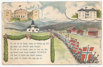 Title (ebay affiliate link): Vi vil os et Land, som er frelst og frit, Patriotic Norway Postcard