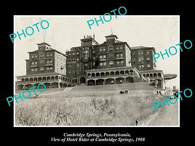 OLD LARGE HISTORIC PHOTO OF CAMBRIDGE SPRINGS PENNSYLVANIA, THE HOTEL RIDER 1908