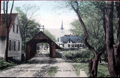 Title (ebay affiliate link): ENFIELD, NH: West Main Street Covered Bridge, Universalist Church View, 1909 pmk