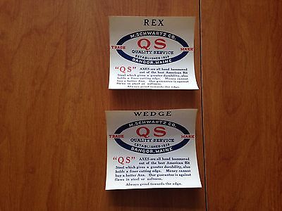 Title (ebay affiliate link): 2 Vintage Axe Labels Schwartz Company Bangor Wedge Rex Oakland Maine ME