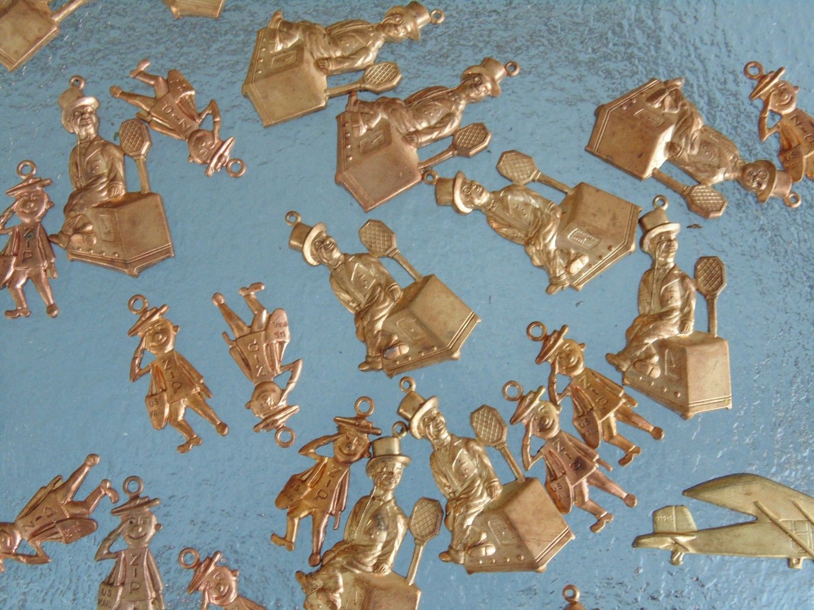 OLD Vintage Charlie McCarthy & ZIP stamped brass Old Stock lot charm 1940s
