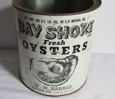 Title (ebay affiliate link): BAY SHORE Oysters Tin 1 Gallon Oyster Tin Chester MD W. H. Harris