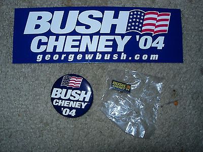 Bush / Cheney 2004 Political Sticker, Lapel Pin, and 2" Button