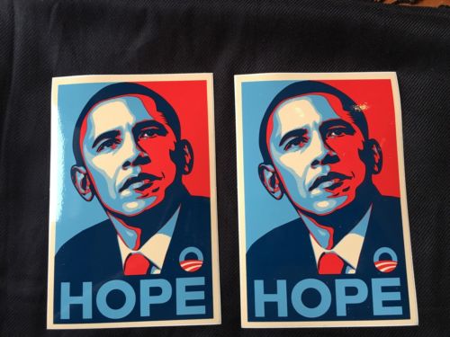 Title (ebay affiliate link): Shepard Fairey Barack Obama HOPE stickers authentic from 2008