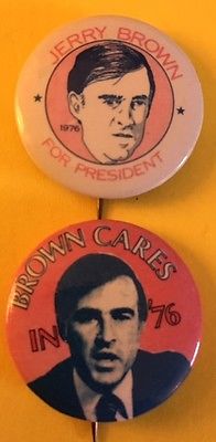 Title (ebay affiliate link): Two Very Neat One Inch 1976 Jerry Brown for Prez Pinback Buttons