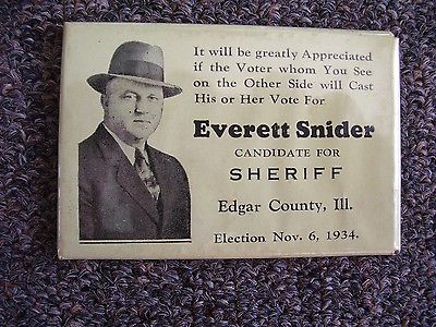 Title (ebay affiliate link): 1934 Everett Snyder Advertising Mirror For Sheriff Of Edger County Il. Paris Il