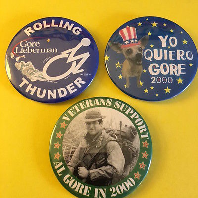 Title (ebay affiliate link): Three Interesting and Different 2000 Gore Pinback Buttons