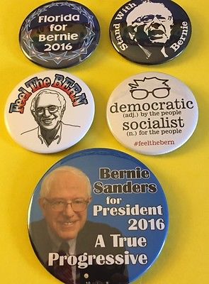 Five Bernie Sanders 2016 Pinback Buttons