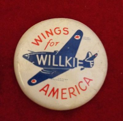Vintage 1940 WINGS for WILLKIE Fighter Jet Campaign Pin