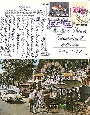 SINGAPORE 1966 Haw Par Villa small RPPC sent to Sweden Ed. ASMK