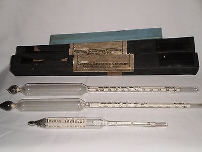Two Antique Hydrometers Central Scientific and one Thermometer liquid Kessler