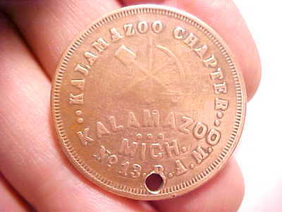 OLD MASONIC PENNY KALAMAZOO MICHIGAN W/ CROSSED MINERS PICK AND SHOVEL Fair