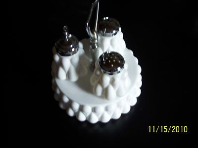 Fenton 1950s Teardrop Milkglass salt pepper mustard set