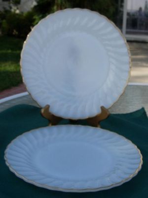 2 Fire King Milk Glass Swirl Gold Edge Plates