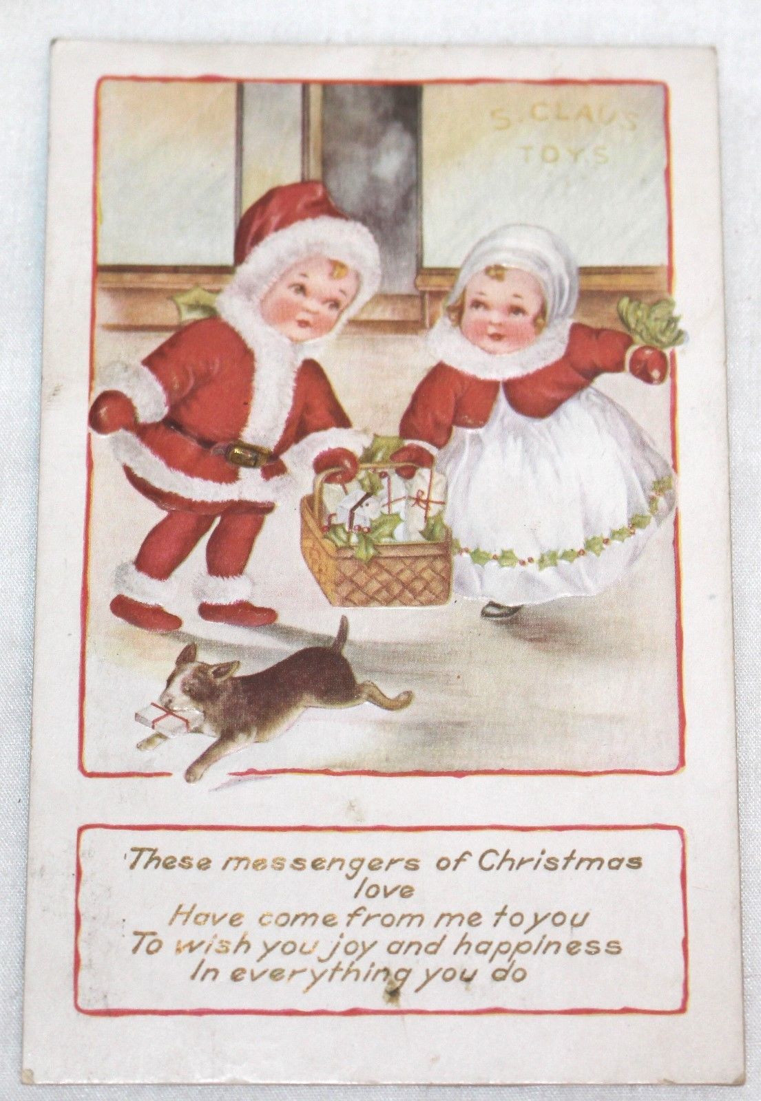 Title (ebay affiliate link): Nimble Nicks Couple with Wicker Basket, delivering Cheer. Christmas Postcard.