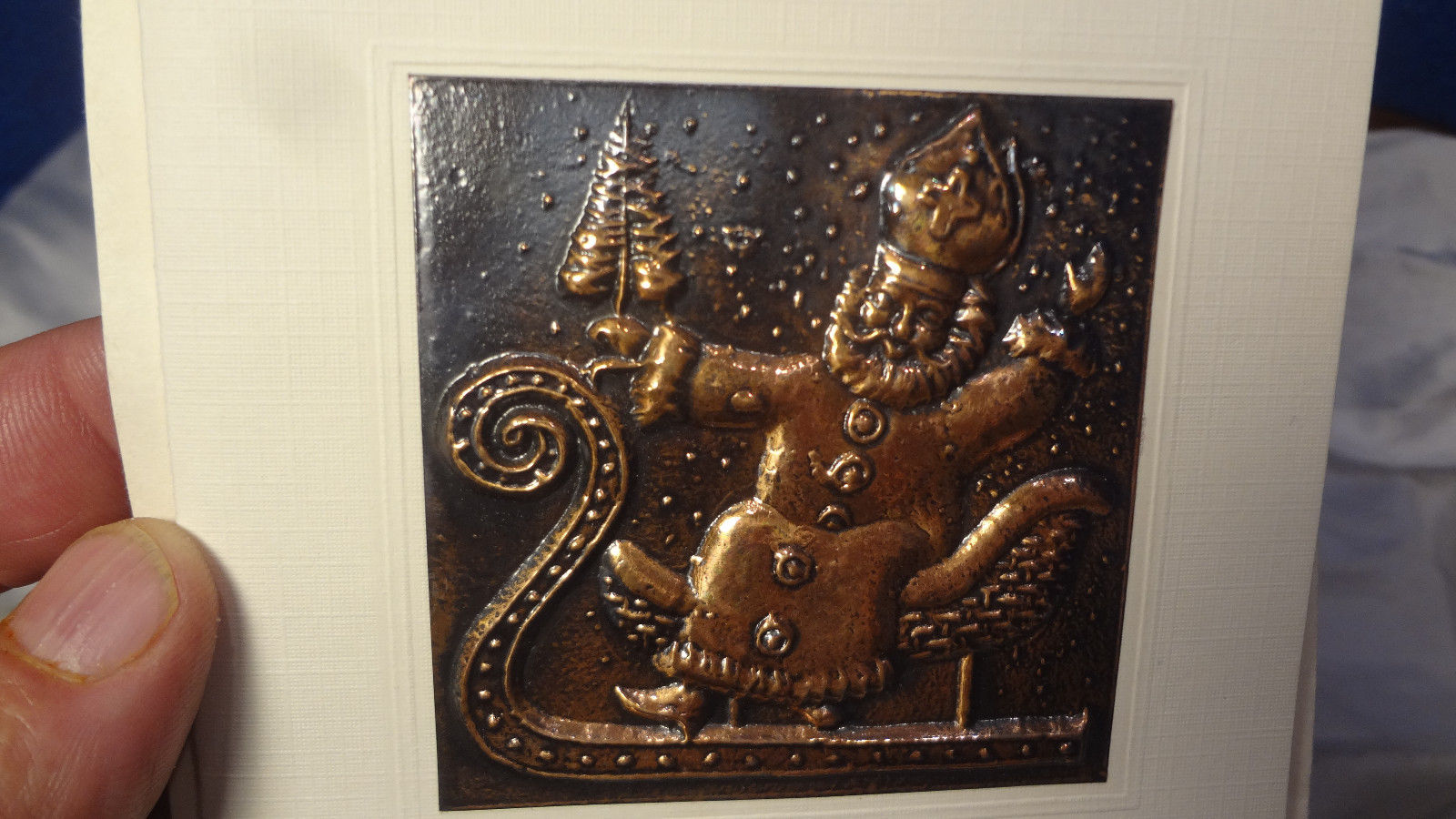 MUSEUM DEACCESSION #3 *CHRISTMAS GREETING CARD EMBOSSED COPPER PLATE*