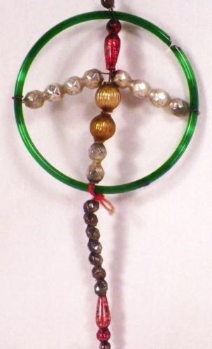 Title (ebay affiliate link): Czech Beaded Christmas Ornament Emerald Glass Ring Pink Silver Gold Antique #14