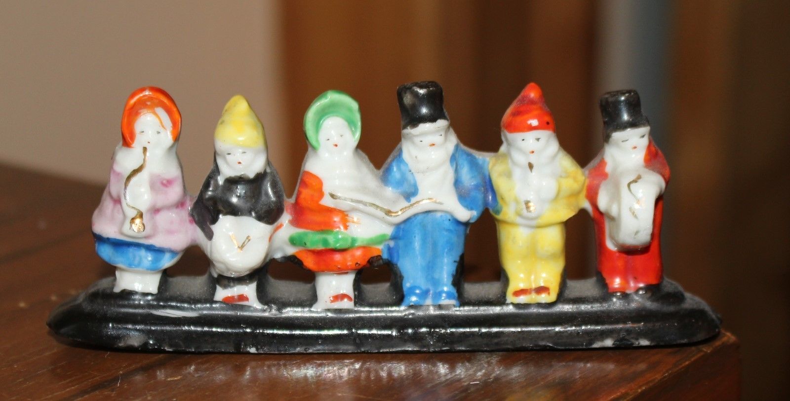 Title (ebay affiliate link): Miniature Ceramic Christmas Band. Six Members, gold Instruments. Japan. 1930s.