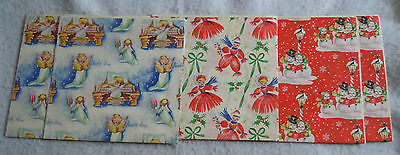 VINTAGE CHRISTMAS WRAPPING PAPER- 6 SHEETS-SNOWMEN, ANGELS, ETC.