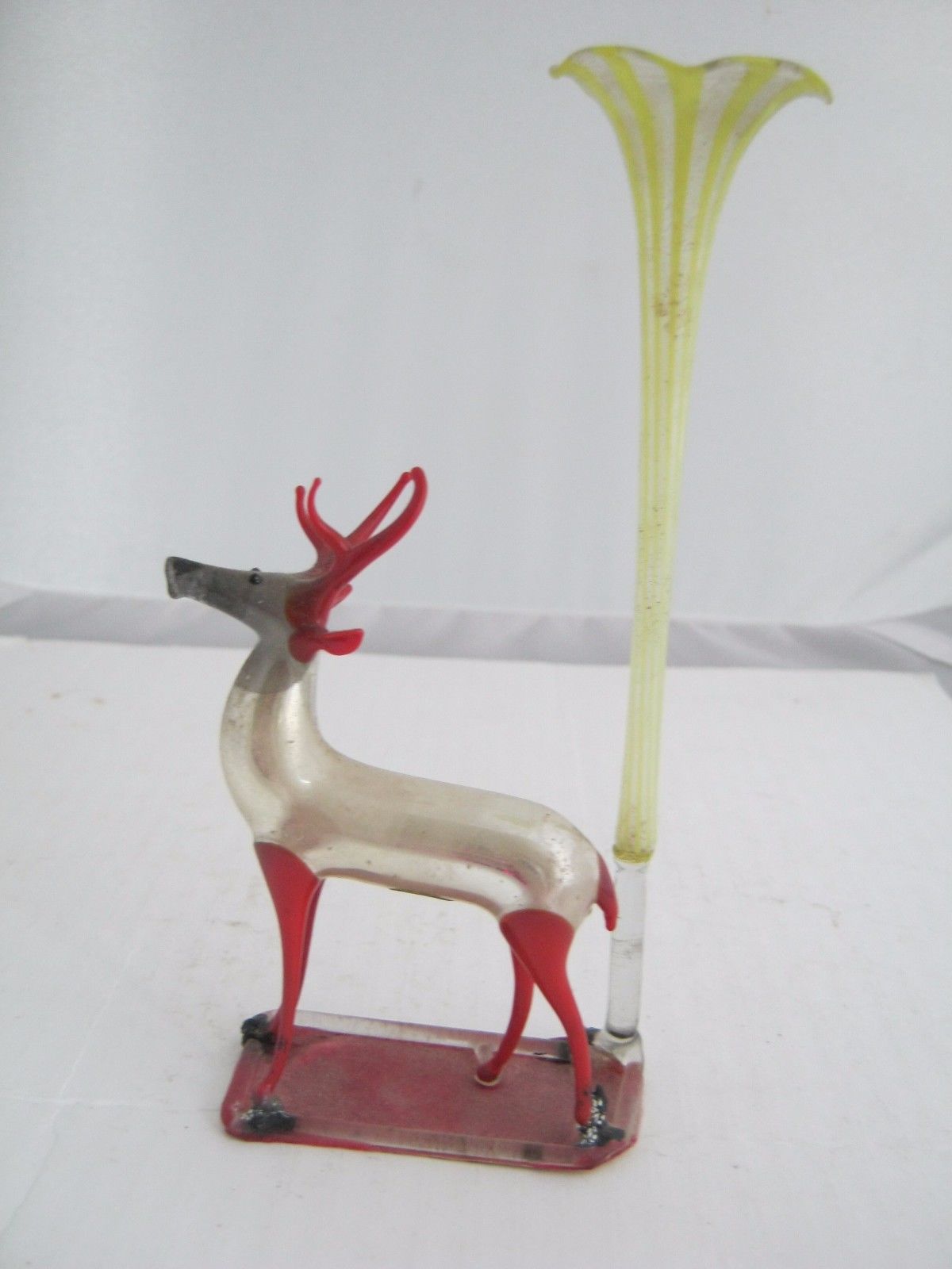 Title (ebay affiliate link): ANTQ CHRISTMAS, BLOWN MERCURYGLASS DEER W BUD VASE, RED LEGS, ANTLERS, GERMANY
