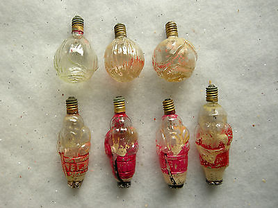 Vintage Christmas Lights - Seven C6 Figural Light Bulbs - Japan 1920's