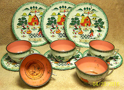 Vintage OHIO ART - 11-pieces "FARMING SCENE" TOY TIN DISHES