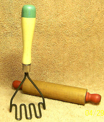 Vintage TOY KITCHEN TOOLS "POTATO MASHER & ROLLING PIN"