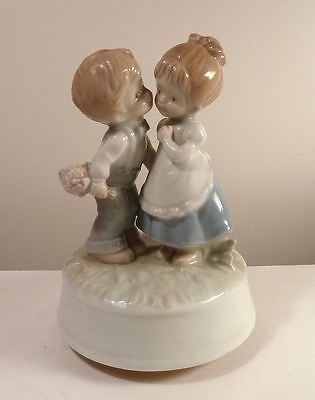 Ceramic MUSIC BOX OTAGIRI 1970s Cute KID COUPLE