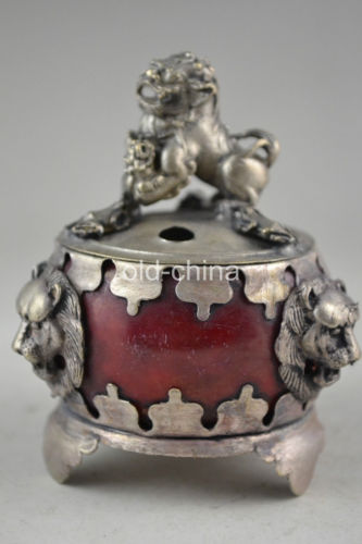 Title (ebay affiliate link): China collectible decorate old red jade tibet silver carve lion incense burner