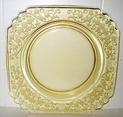 Title (ebay affiliate link): VINTAGE USA AMBER DEPRESSION GLASS PLATE BEAUTIFUL PATTERN NR