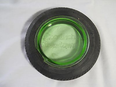 ANTIQUE VINTAGE B F GOODRICH PROMOTIONAL TIRES ASHTRAY GREEN DEPRESSION GLASS