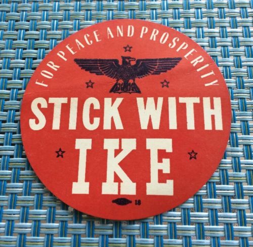Title (ebay affiliate link): Vintage 1952 "STICK WITH IKE". For Peace and Prosperity. Political Sticker