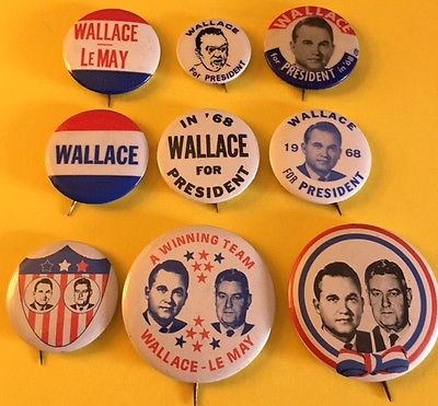 Title (ebay affiliate link): Nice Lot of Nine George Wallace and Wallace/LeMay Pinback Buttons