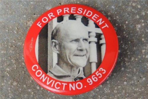 Title (ebay affiliate link): Debs "FOR PRESIDENT CONVICT NO. 9653" Pin Button Replica
