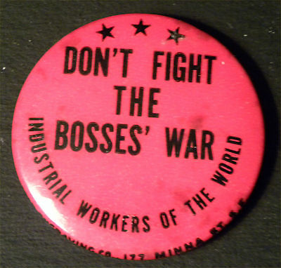 Title (ebay affiliate link): 9195. Button "Don't Fight the Bosses' War, International Workers of the World"