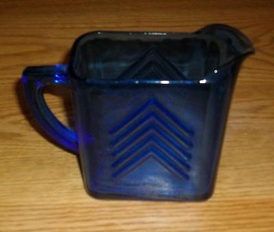 Title (ebay affiliate link): COBALT BLUE DEPRESSION GLASS CREAM PITCHER-CHEVRON-NICE