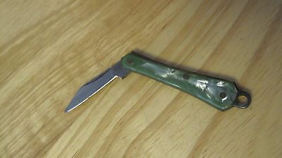 VINTAGE GREEN MOTHER OF PEARL HANDLE FOLDING MINIATURE POCKET KNIFE Keychain