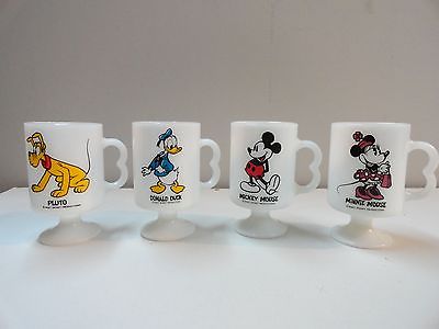 Title (ebay affiliate link): 4 Milk glass mugs with Disney Characters: Mickey, Minnie, Donald and Pluto