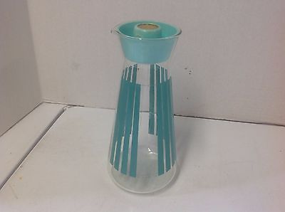 Vintage Mid Century Carnation Dry Milk Glass Pitcher w Turquoise Stripes