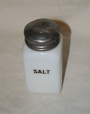 Vtg.Milk Glass Large - Salt Shaker - Black Letters