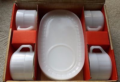 Vintage Milk glass SOUP 'n SANDWICH 8 Piece Set Federal Glass Co. Ohio USA w box