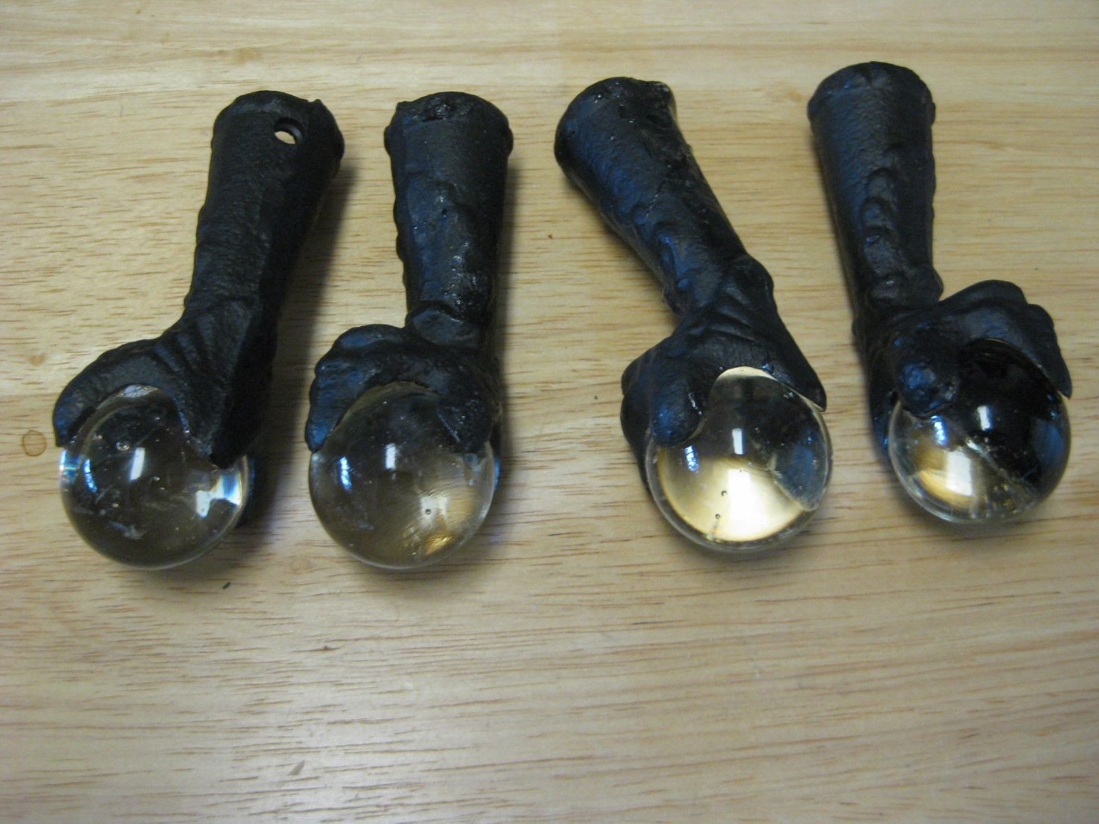 Title (ebay affiliate link): 4 Vintage Cast Iron Glass Ball and Claw Foot Furniture Table Leg Piano Stool