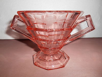 VINTAGE PINK DEPRESSION GLASS ETCHED SUGAR BOWL w/ HANDLES FEDERAL?